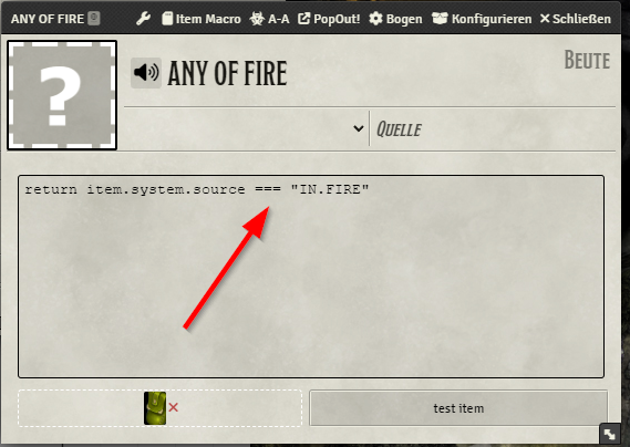 well it is a macro you can javascript what ever you see fit. e.g. something like: just make sure that each of your paths return a boolean. Also sidenote the usage of item.system.source was just an example you can reference anything on item. |