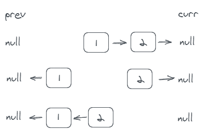 - 顺序遍历链表 head , 将其中的元素移入链表 prev .