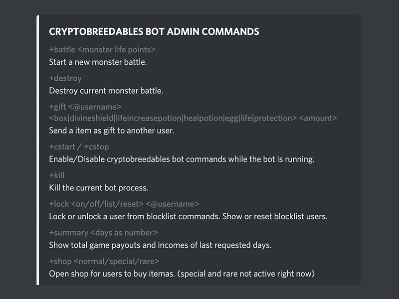 Enable/Disable cryptobreedables bot commands while the bot is running.