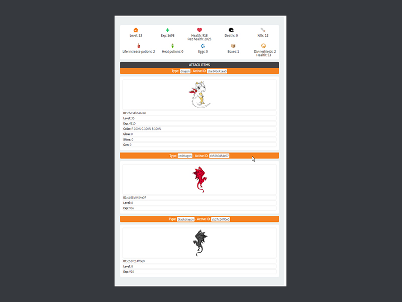 Activate/Change item by type and id for the battle. Type +me to get your profile link to check your items.