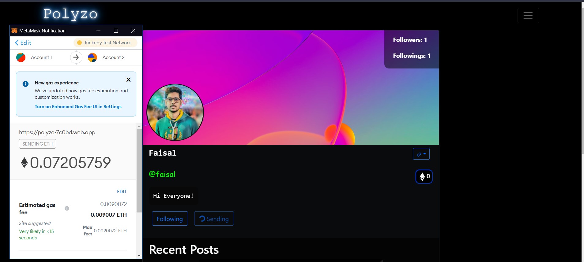 User can register and post the contents, follow other users and able to send Ethereum to otherregistered user using Metamask.