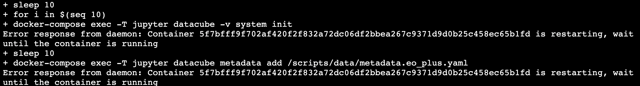My database and jupyter server are both "Up", and I found error responses in initializing the datacube system when I check the installation log (see attached screenshot).