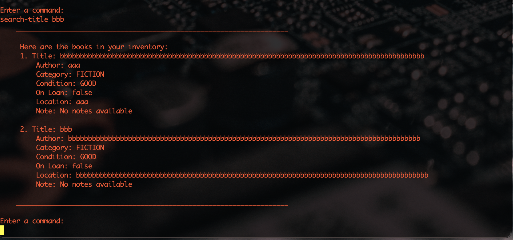 Search-title is returning another books that does not have the same name as the keywork given. Keyword: bbb, return titles: bbb and bbbbbbbbbbbbbbbbbbbbbb