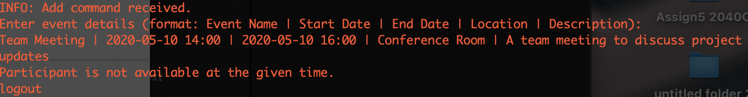 Add Feature does not add Participants does not add event even though participants timing is the same