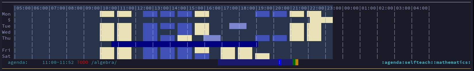 org-timeline-keep-elapsedhours ago.org-timeline-start-hourto be 0. It will probably break (i.e. not show blocks that should appear) if you set this to a different value.jin the agenda and asking for yesterday to be shown.org-timeline-start-hourwhenorg-timeline-keep-elapsedis disabled (negative).org-timeline-insert-before-titlethat defaults to "\u275A".TIMELINE_DO_NOT_OVERLAPfor a task.Other changes: