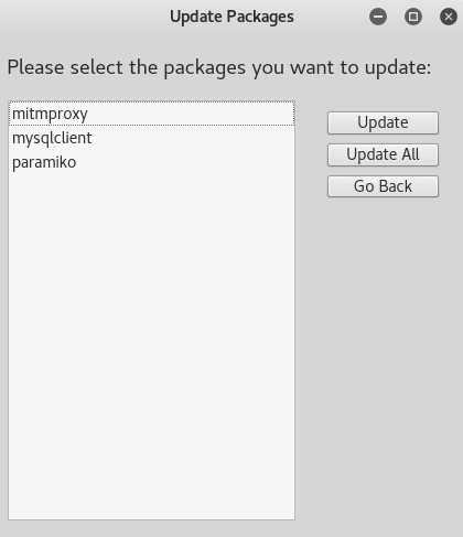 The update screen displays the list of packages which are out-of-date and can be upgraded.