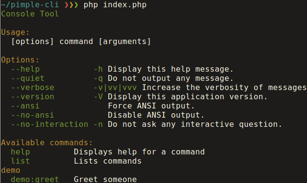 PimpleCli works with a Pimple container (eg: a Silex application) and a Console Application (eg: using http://symfony.com/doc/current/components/console/introduction.html). PimpleCli's role is to discover commands in the Pimple container to make them availlable the the Console Application.
