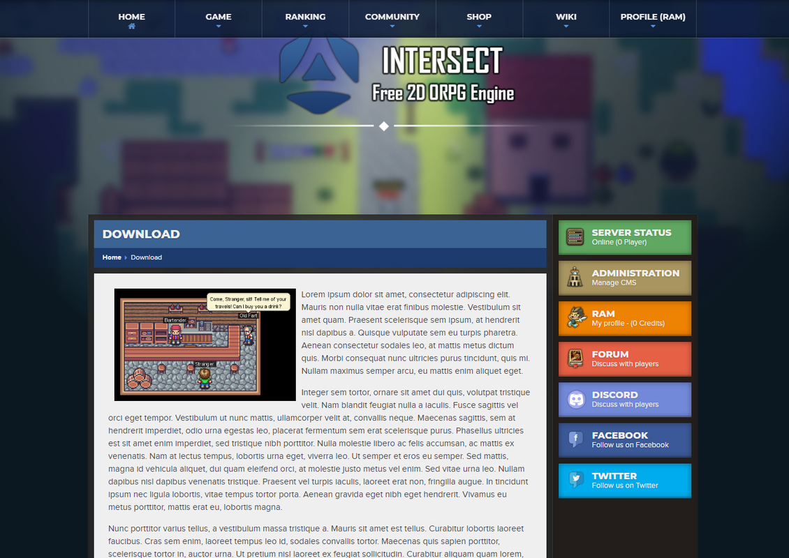 IntersectCMS uses the Intersect Engine API to process data as simply as possible through a web interface. Whether you use the sqlite or mysql database, this CMS will automatically adapt itself thanks to the game engine API. Part of the CMS uses a MySQL database, so it is necessary to have one for the proper functioning of the site's functionalities.