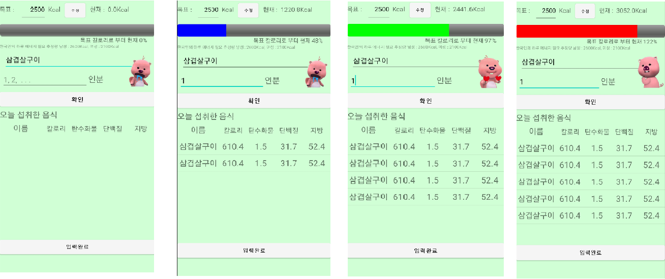 - 변경 및 식단 진행 상황을 progressBar를 통해서 알 수 있습니다.