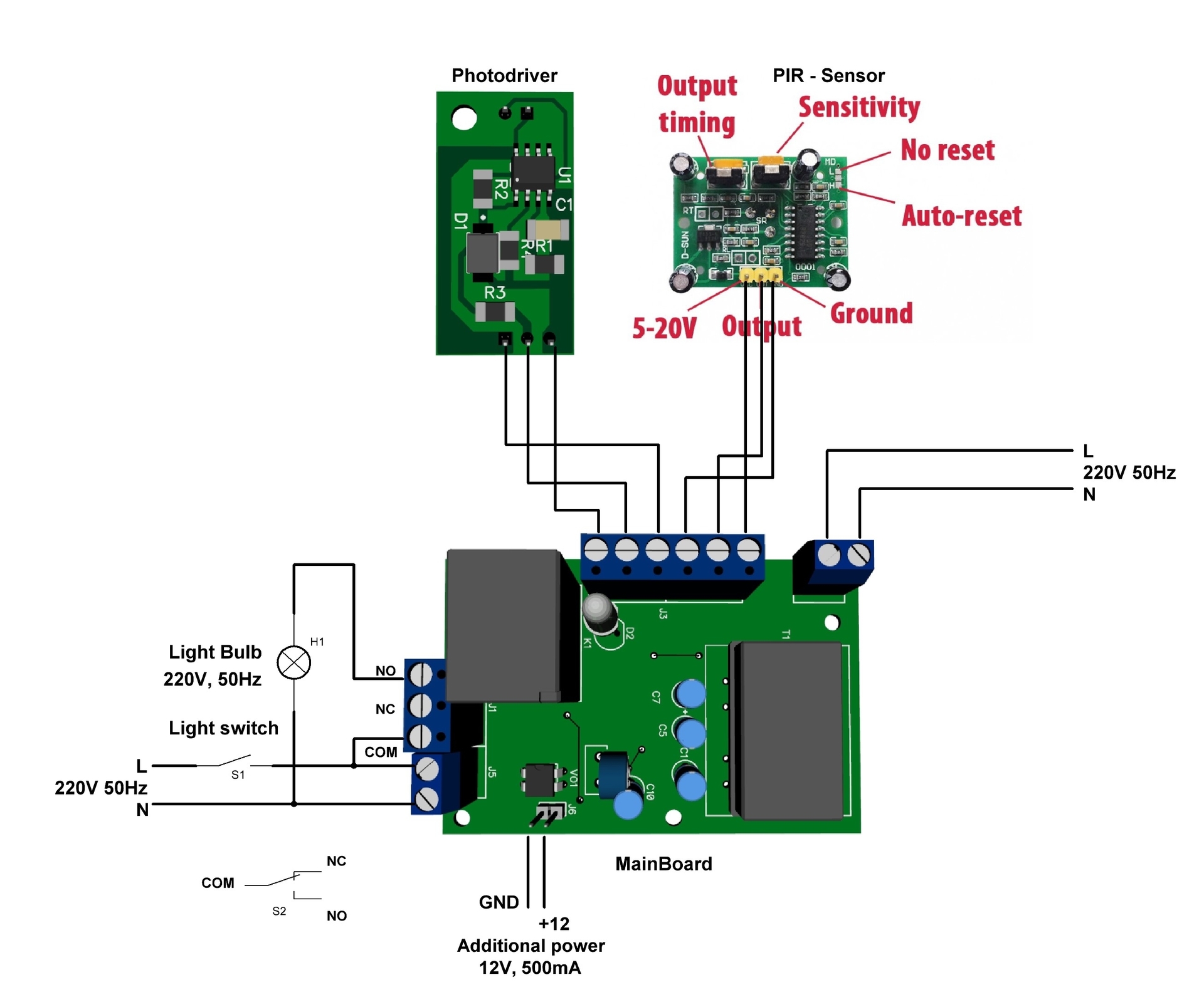 Algorithm: Priority always has a light key switch, regardless of the level of illumination of the object and when the PIR sensor is active.