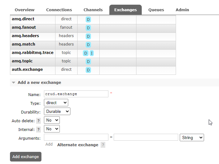 queue = auth.user.queue Routing key = auth.user.routingkey
