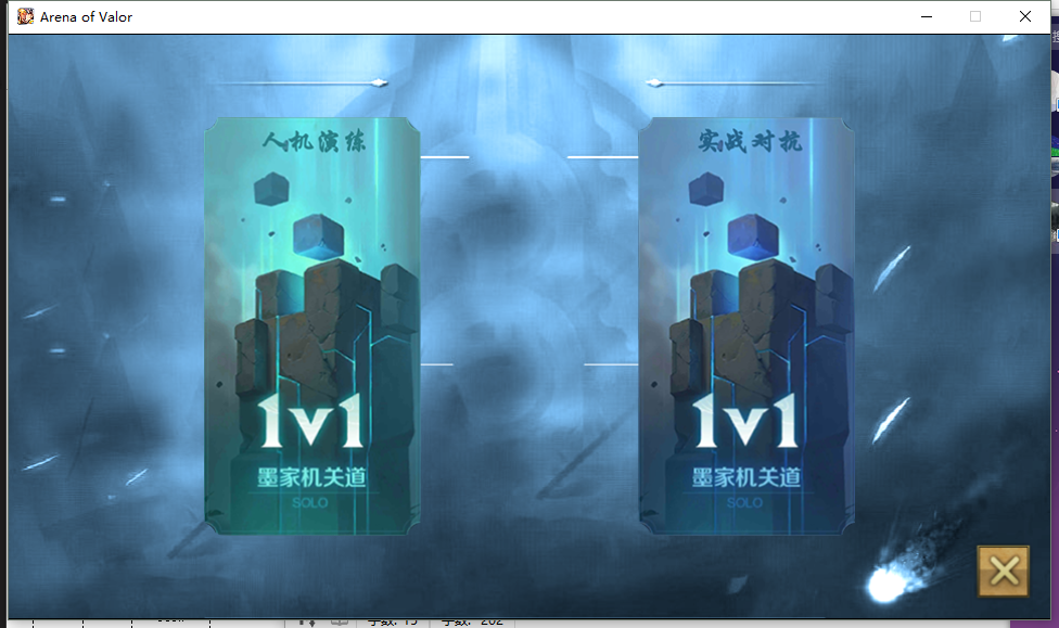 - 选择左侧的人机演练即可进入人机模式,右侧进入联网模式,联网模式的具体操作方式在最后讲解。