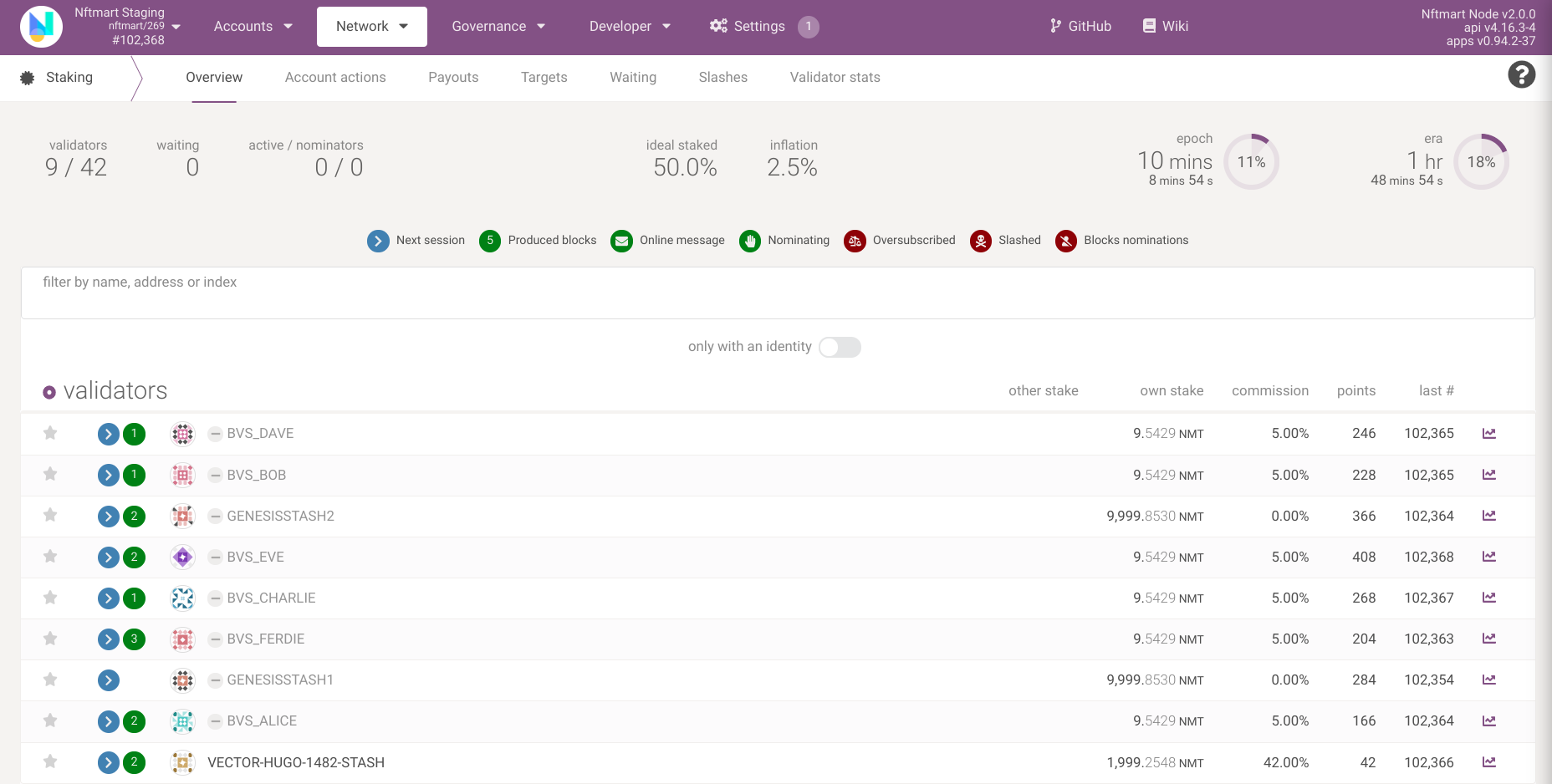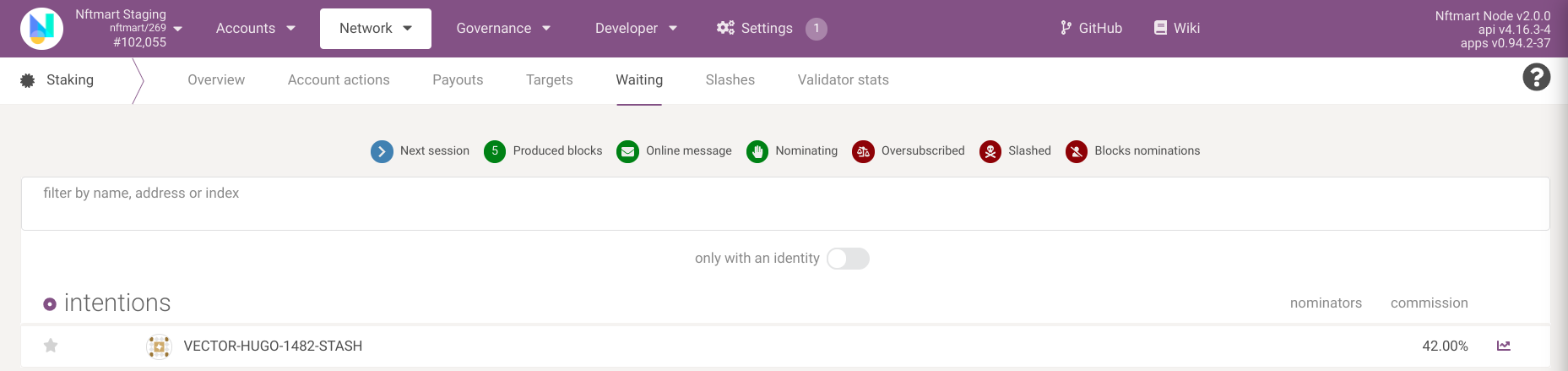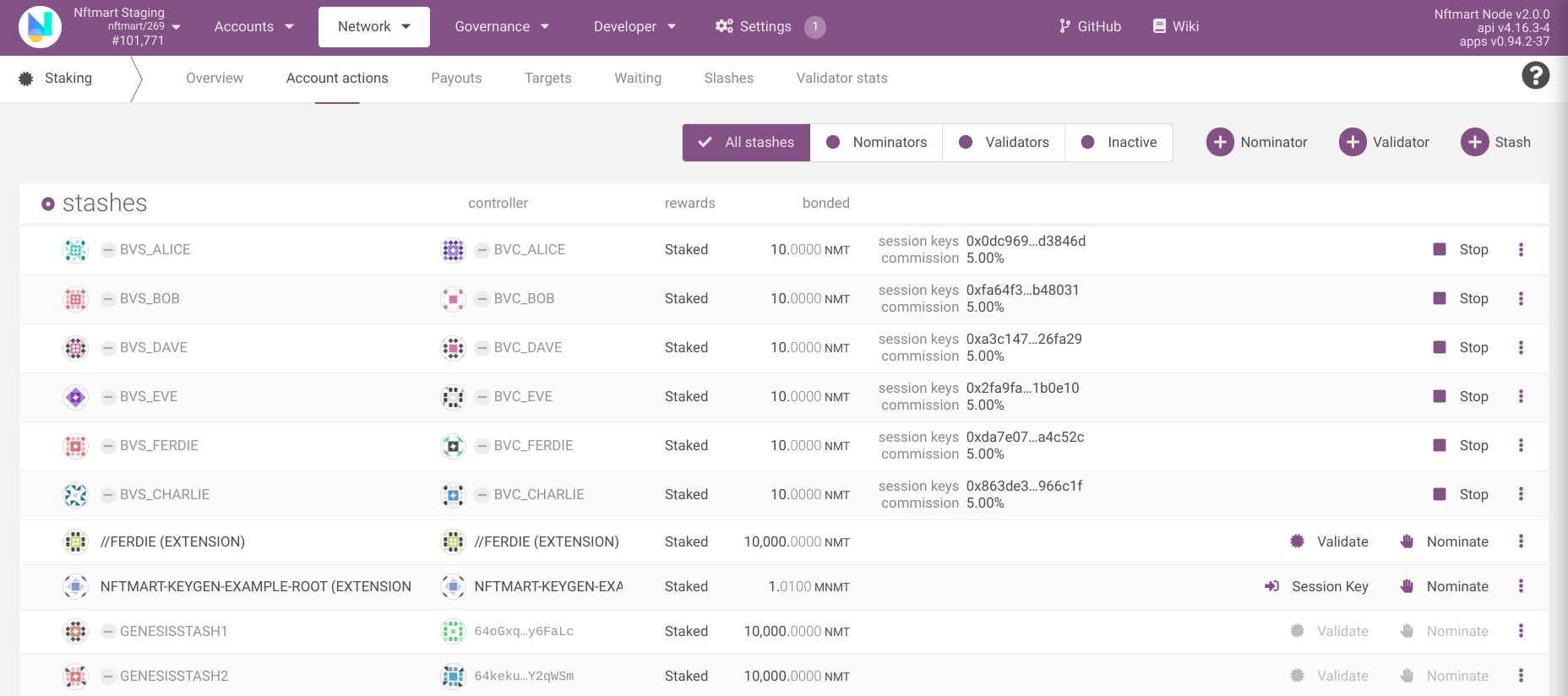 Open https://polkadot.js.org/apps/?rpc=wss://mainnet.nftmart.io/rpc/ws#/staking/actions