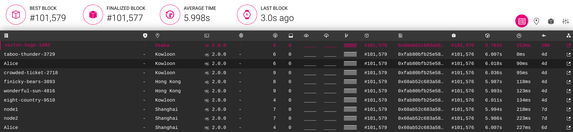 As your can see ,our example node victor-hugo-1482 already produce two blocks.