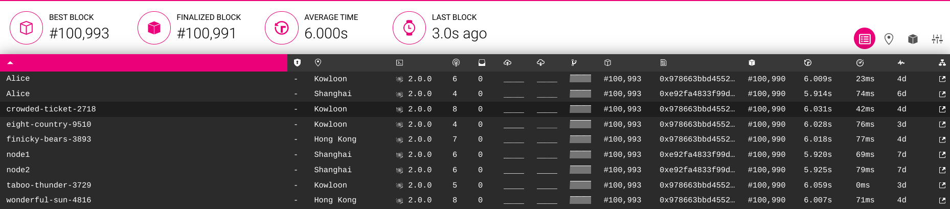 We can get more infomations of current network, such as blockheight, average block time, version and other's node name.