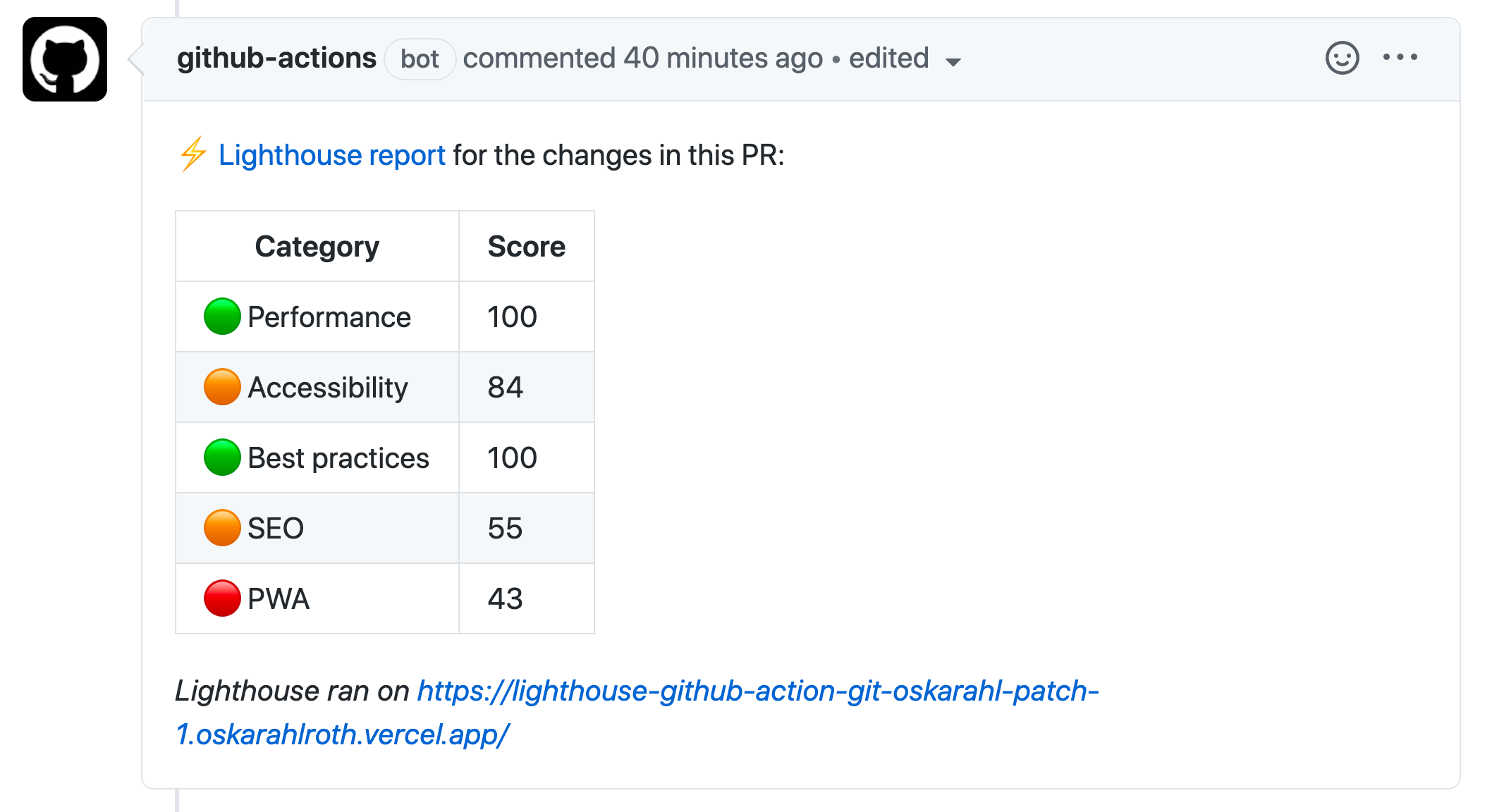 - Combine the action with a budget to prevent PRs that bring the metrics below a set treshhold.