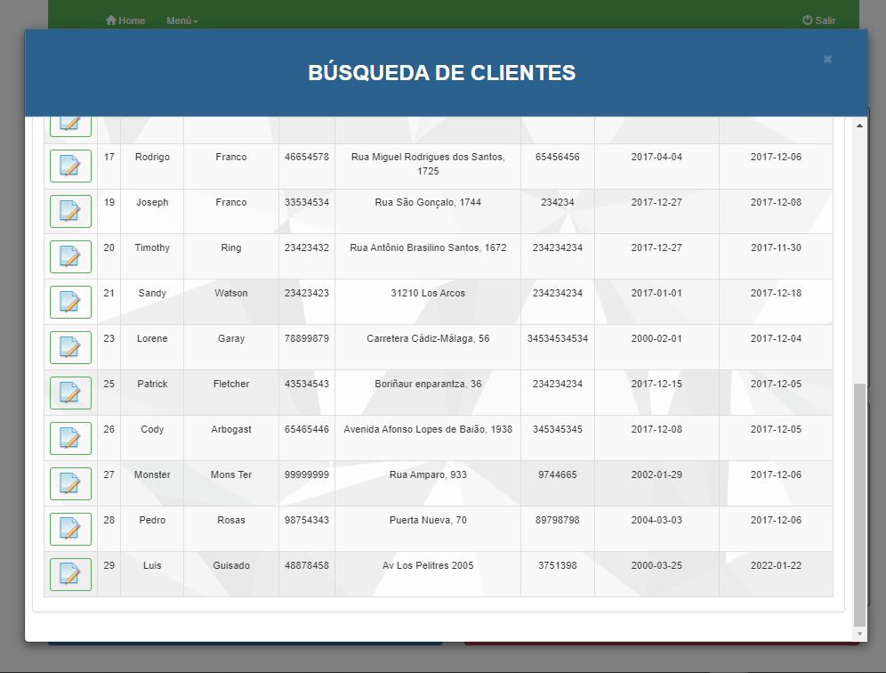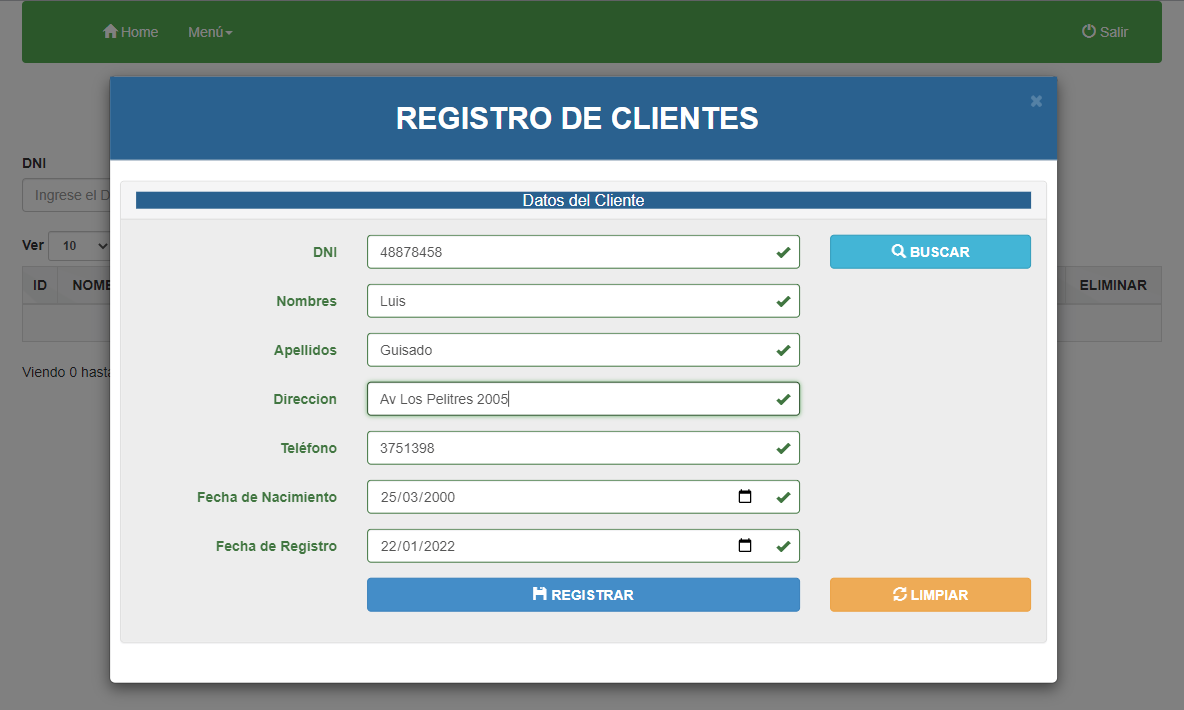- Librerías: JQuery, Bootstrap, Bootstrap Validator, DataTables, sweetalert