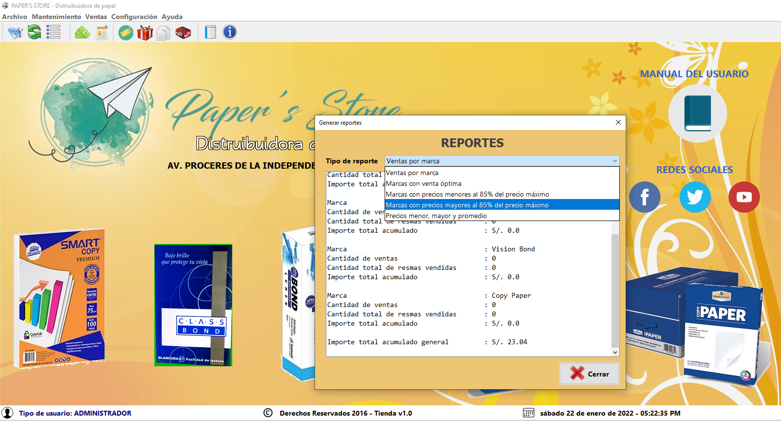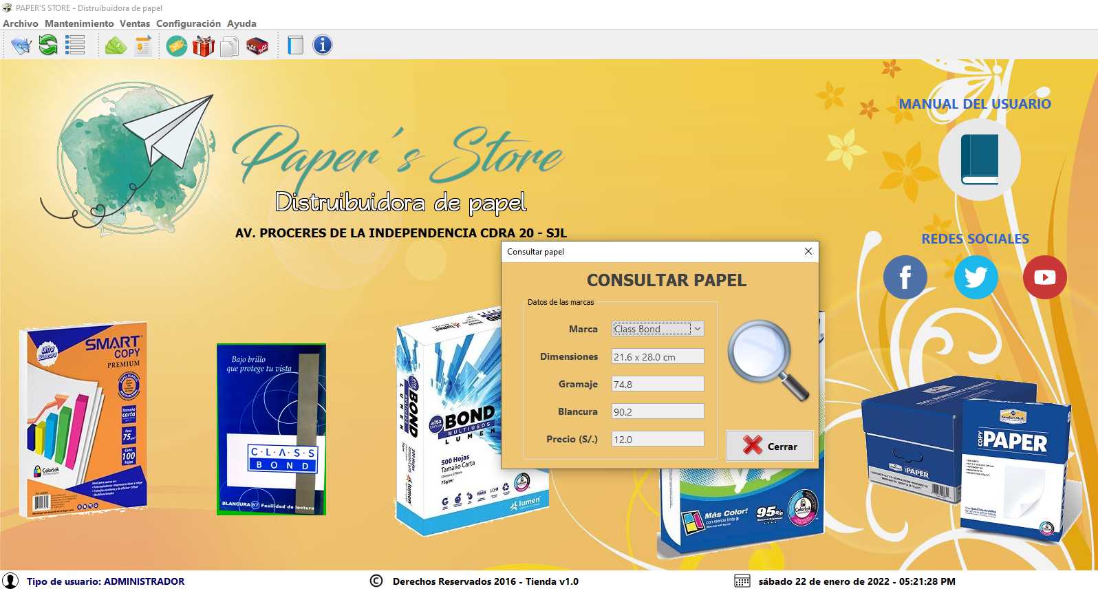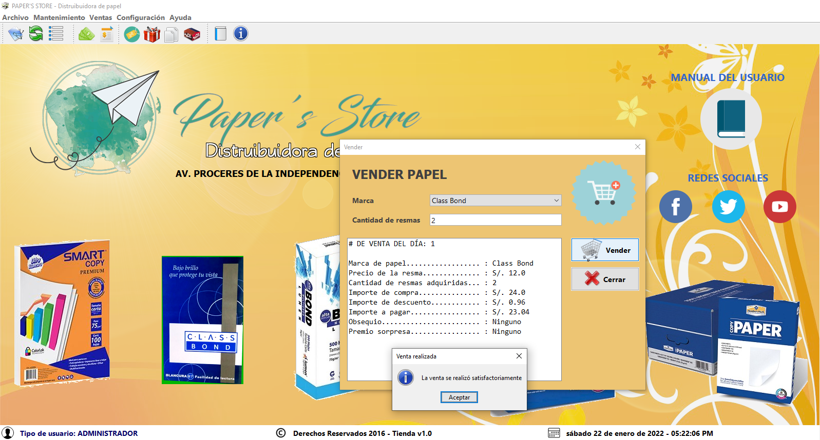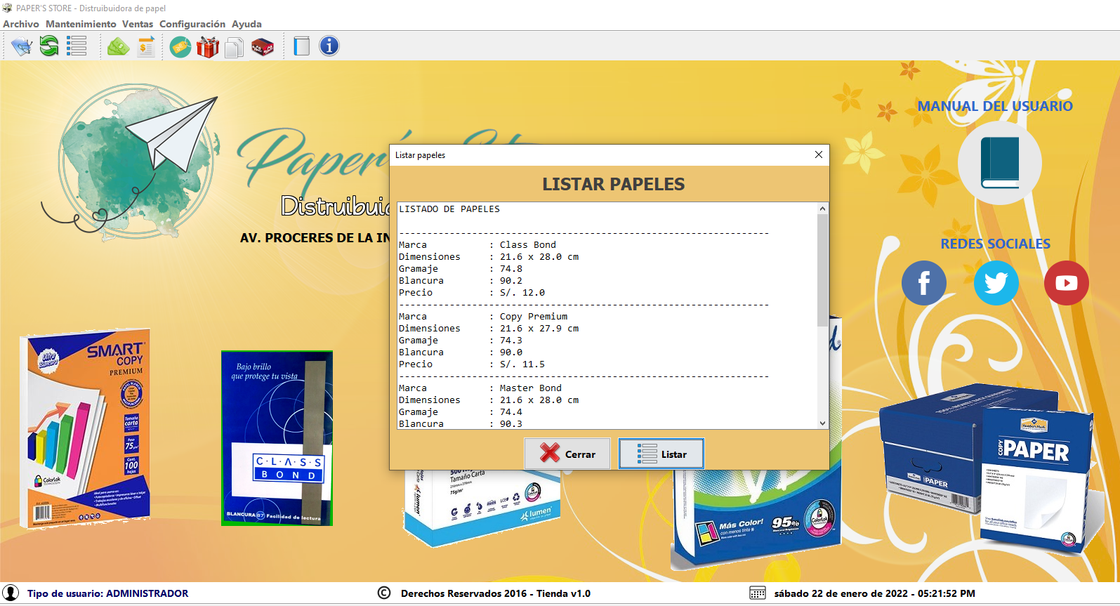 Proyecto final del curso de Introducción a la algoritmia del primer ciclo (2016). Lenguaje de programación Java. Se desarrolló una aplicación de escritorio de venta de papel.