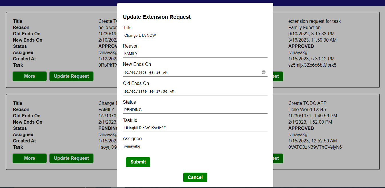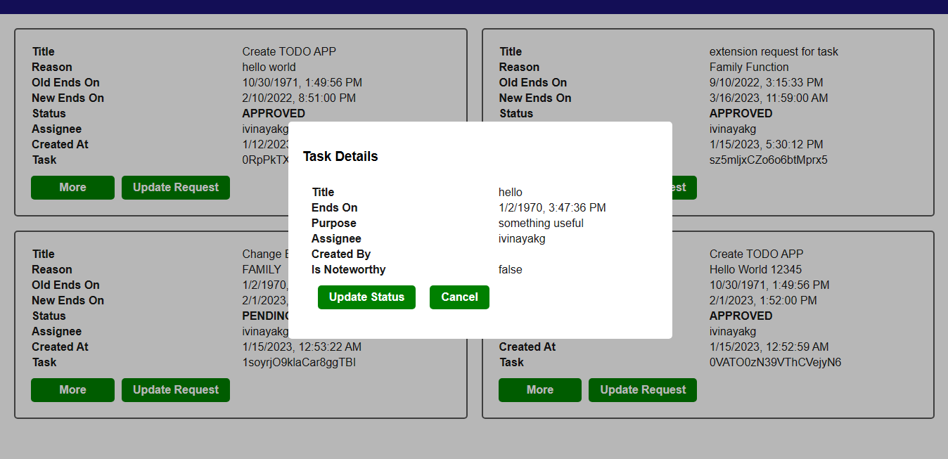 SUPERUSERonly.APPROVED), which will by default change the new ETA of the task if the status is updated toAPPROVED.UI