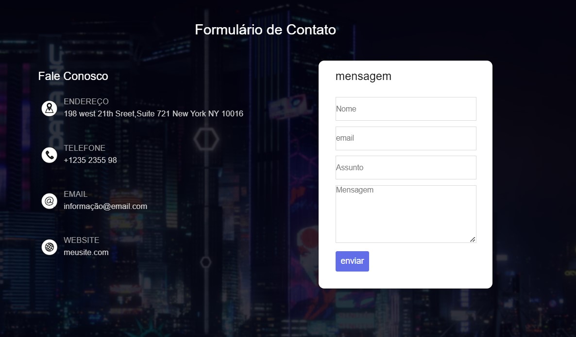 Título do Projeto Projeto feito para treinamento das habilidades em HTML5 e CSS3, utilizando de formulário. Demonstração https://rodrigobaptistadev.github.io/pagina-form/ Screenshots