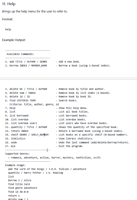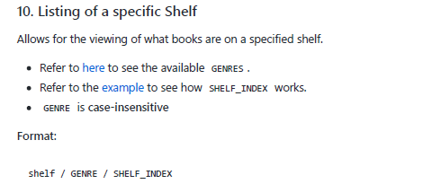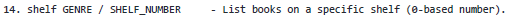 which contradicts the earlier instructions, In that an additional "/" character is required between the shelf command and the "genre" keyword