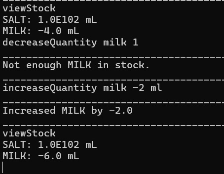 As seen in the image, stock value is not supposed to go below 0 but you are still able to by increasing by a negative value