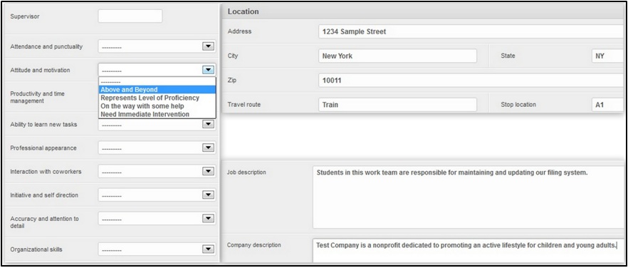 SWoRD allows users to save basic company information for each work site associated with the school including Department of Labor forms. Additionally, information from client visits is saved along with the pertinent evaluations shown below.