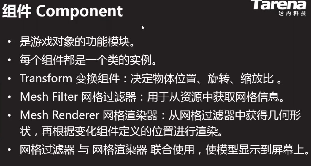 一个组件相当于游戏物体的一个功能。
