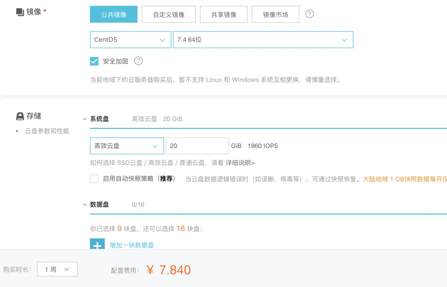 - 注意系统一定要选择centos 7.4版本,选错了遇到问题可不负责喔