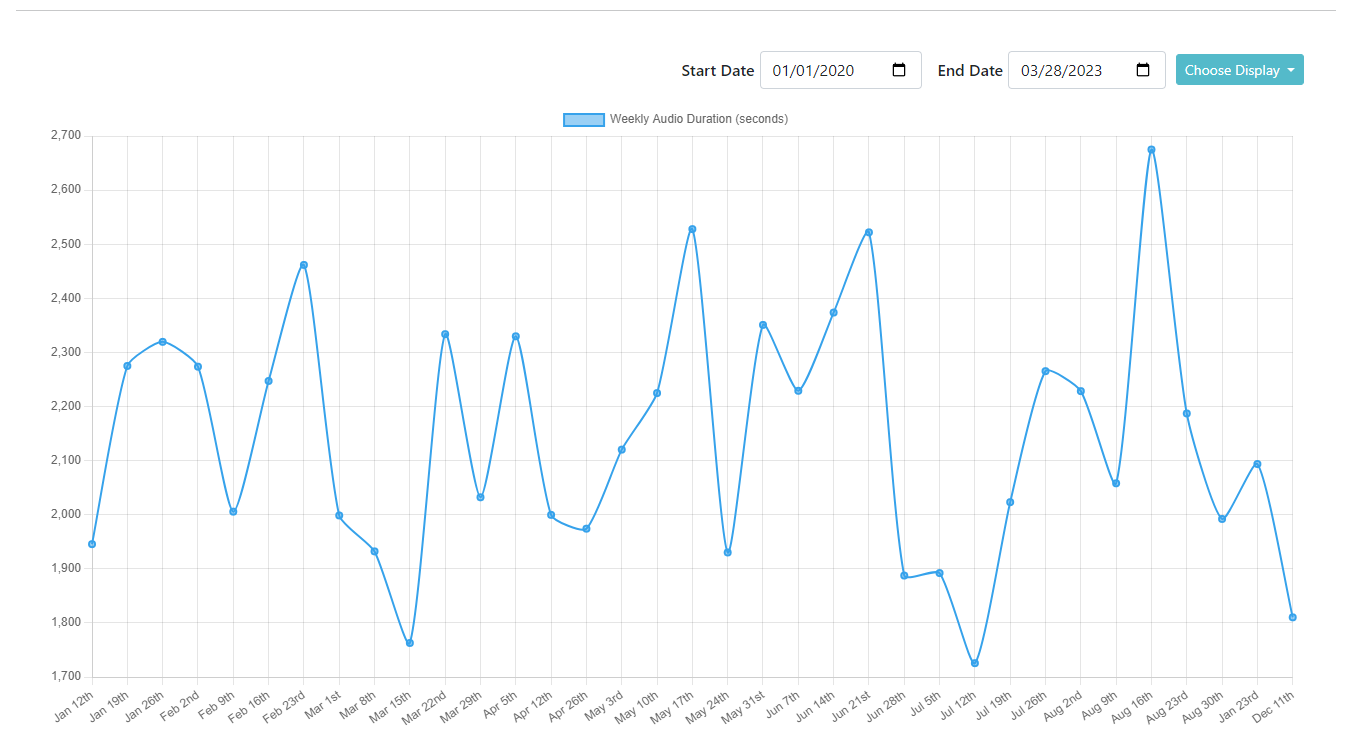 - "Total" charts are aggregates whereby any data existing before the requested period is accounted for in the start value