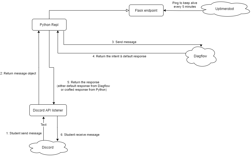 This chatbot is running 24/7 to answer questions from students so I choose to host it for free on replit.com and have uptimerobot.com to ping the server every 5 minute to prevent it from shutting down on replit.