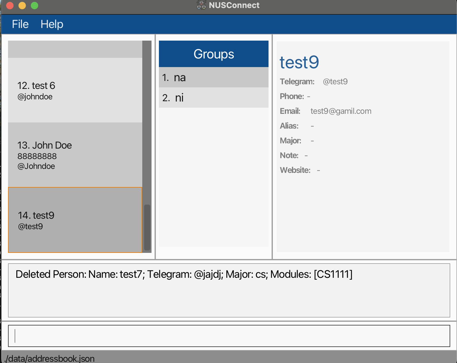 Description: If I view a person first and deleting that person. It will automatically do the things like a view command to display another person's information. In this situation, if the person I deleted is the first person, it show the person behind him. Otherwise, it show the person in front of him.(In a ten people list. You can do view 1 ,delele 1 and view 7 delete 7 to check) Besides, Iy you do not view a person first then delete one, app will not display any person information. This will be quite confusing for users and in UG , most of the screenshots after deletion is no display.