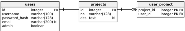 - user_project: table of the relation Many-to-Many of the users and projects.