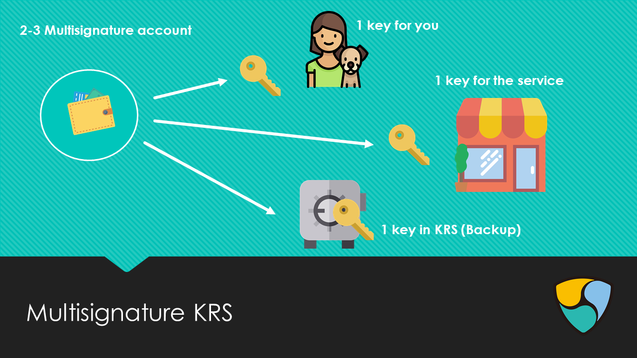 - Multisig KRS: a user wants to use a third-party service (e.g. a wallet), but want to make sure he can access his funds if the service shuts down, he forgets his password or he loses faith in the service.