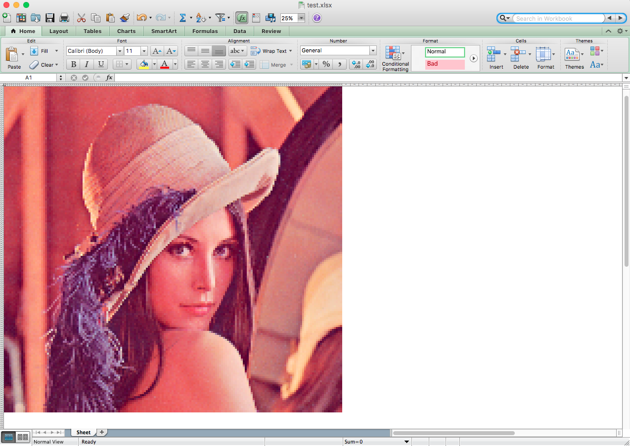 xlart image.png destination.xlsxYou can control the downsampling with the --scale argument.