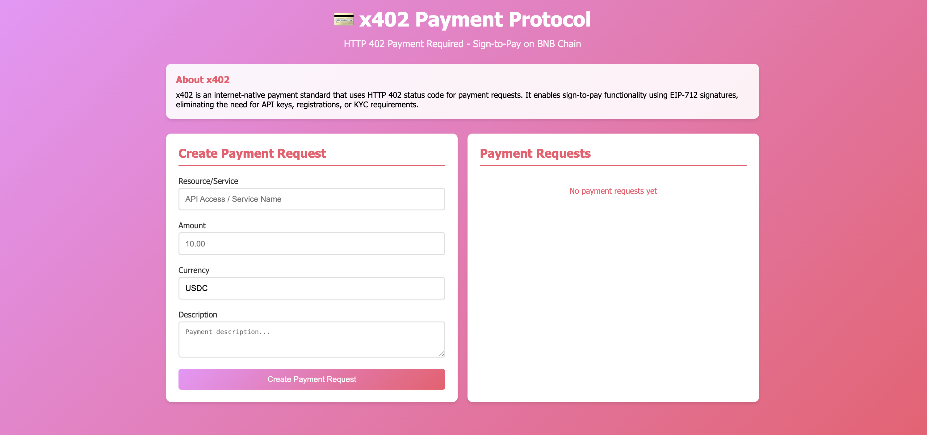 Adds an x402 payment protocol implementation on BNB Chain, demonstrating HTTP 402 "Payment Required" for internet-native payments with sign-to-pay.