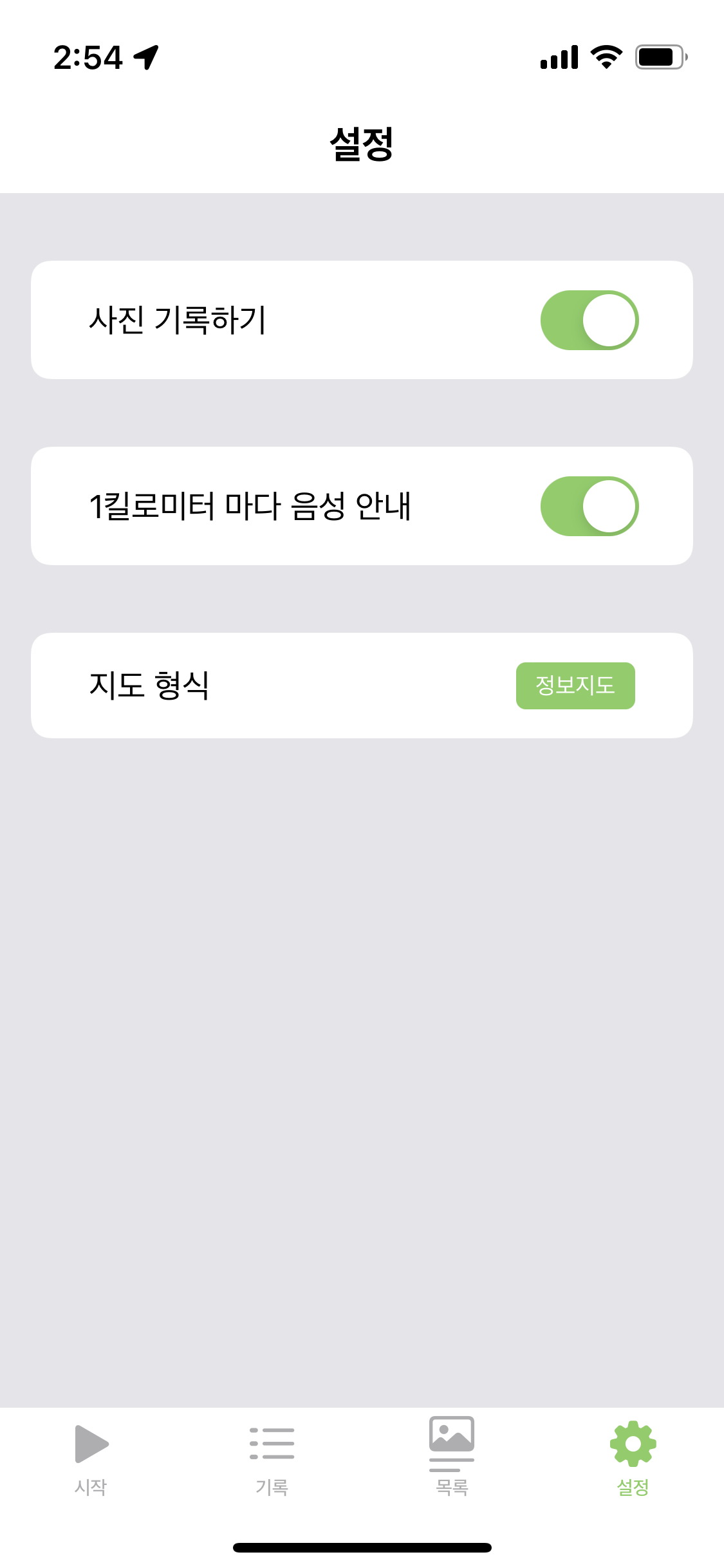등산 측정을 시작하면 등산에 대한 여러 정보를 측정할 수 있습니다. 또한 등산 중에 찍은 사진기록도 저장이 되며 1km를 걸을 때마다 음성 안내도 지원하고 있습니다.