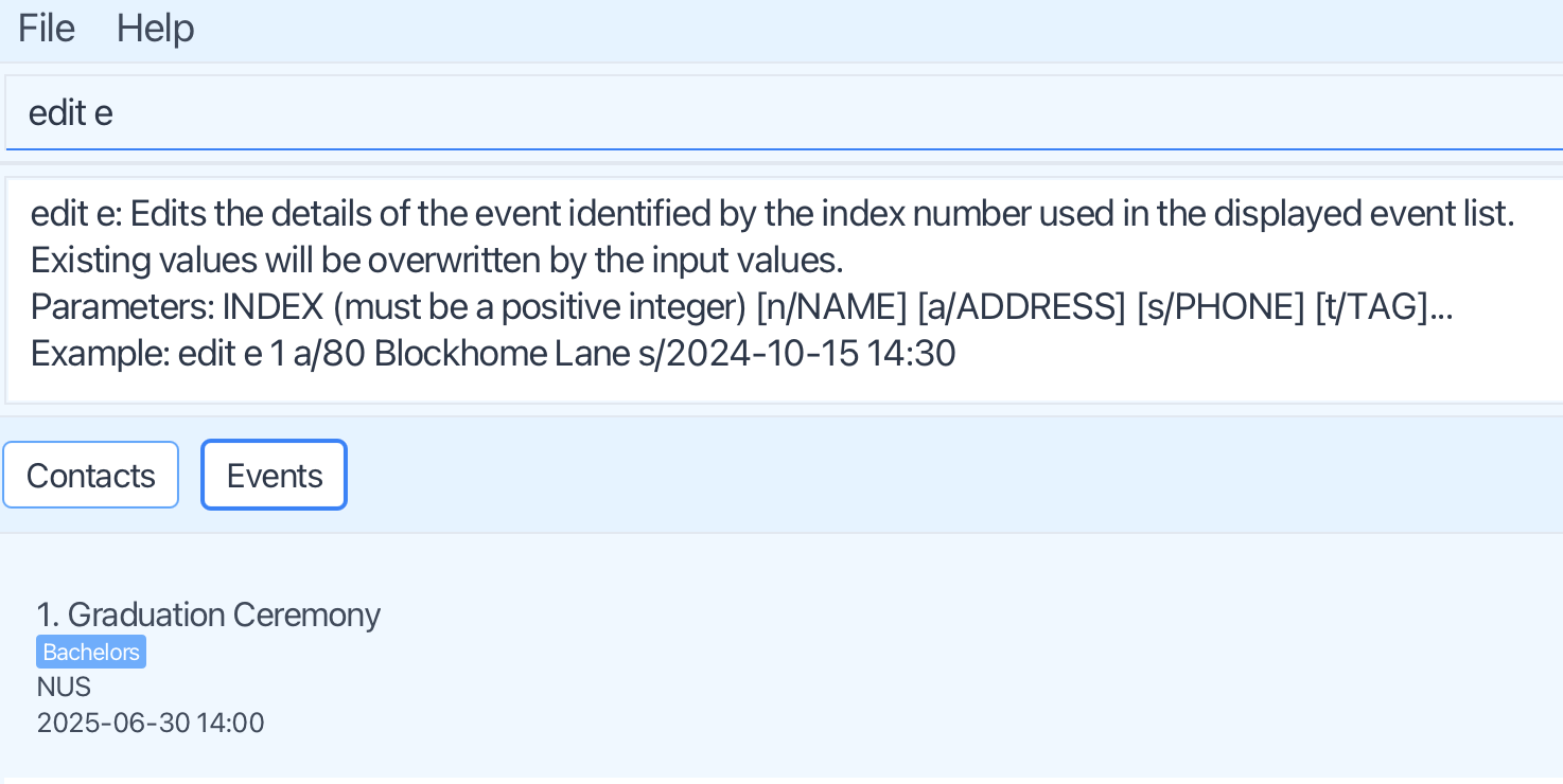 When typing in the command edit e, the following help text is shown: