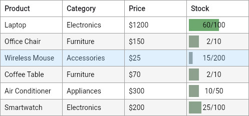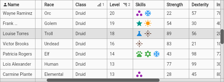 - Pinned columns.