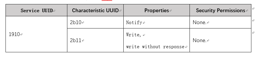 Tuya ble sdk不提供初始化service相关接口,Application需要在初始化sdk前实现下图所定义的sevice characteristics,否则sdk将不能正常工作。