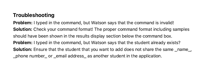 Able to add people with different name but same phone number and address without any errors despite the troubleshooting mentioning that Watson would catch the error