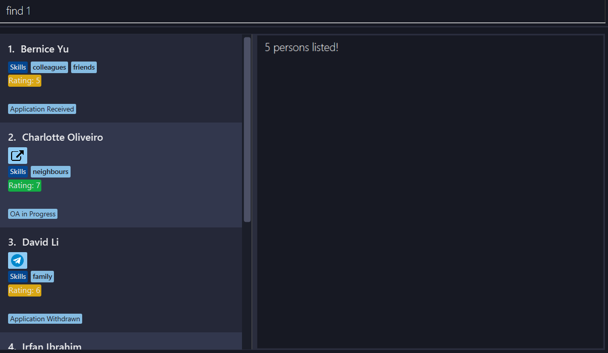 Finding 1 returns all persons that have 1 in their personal particulars. I think this is quite ambiguous as 1 is not being tied to any keyword like name or phone number
