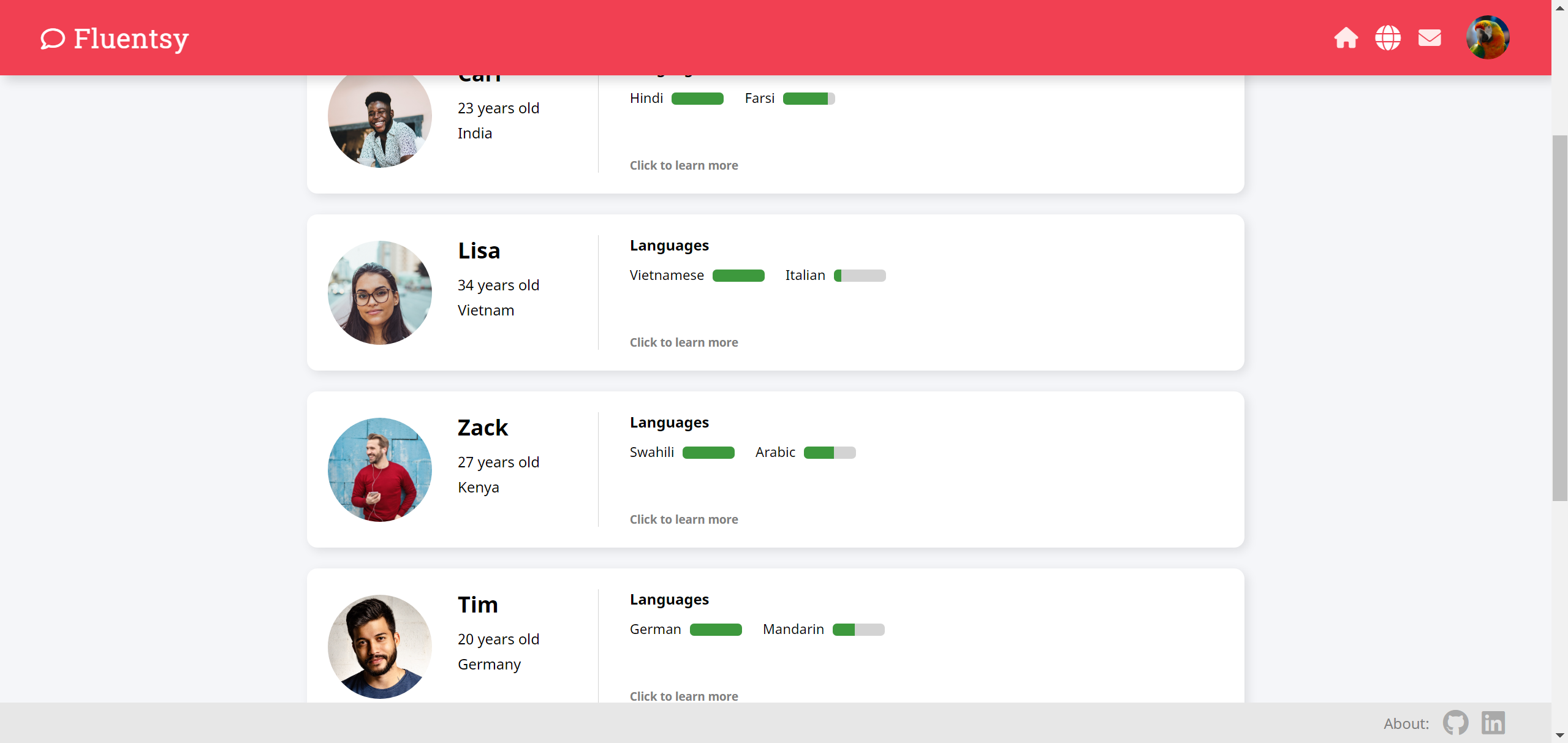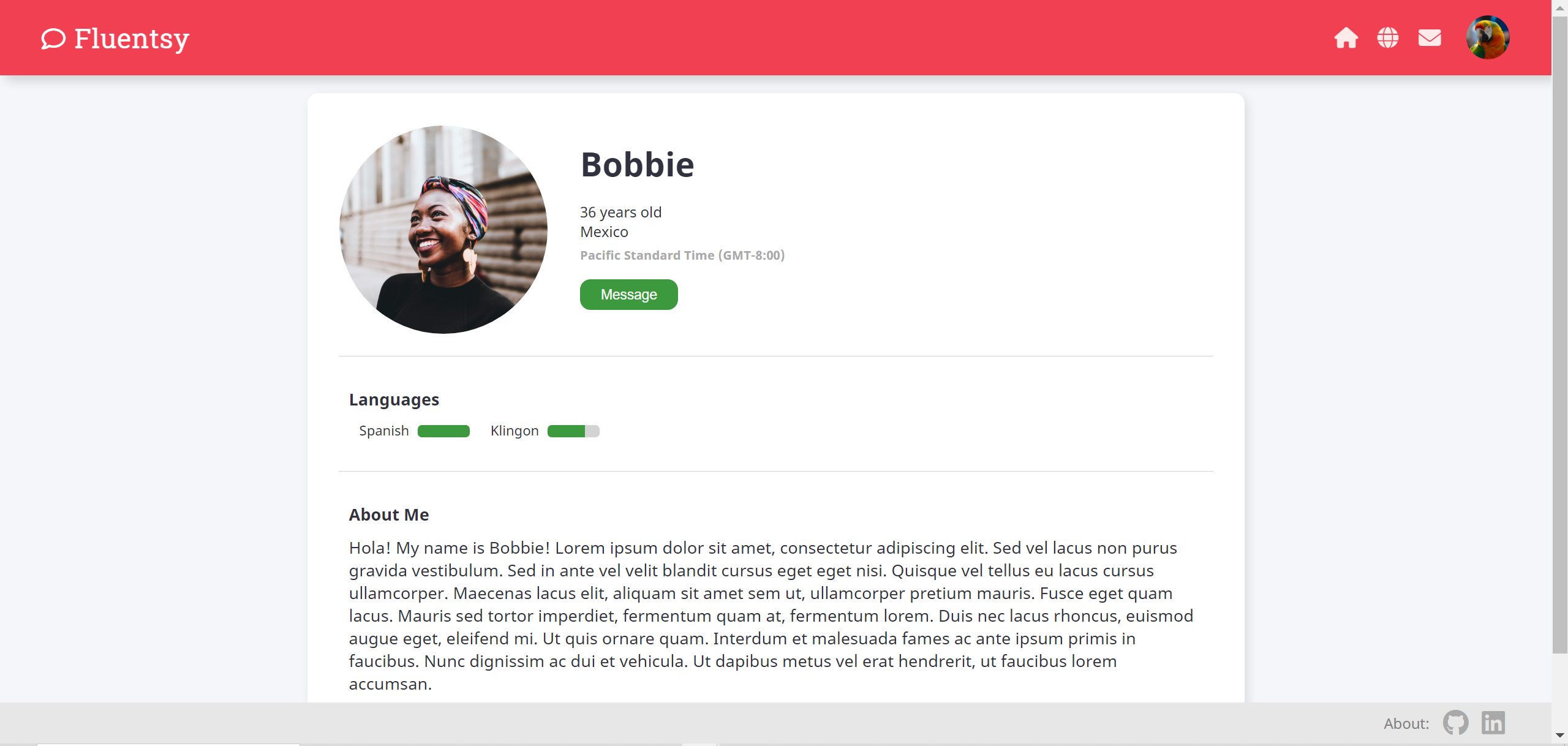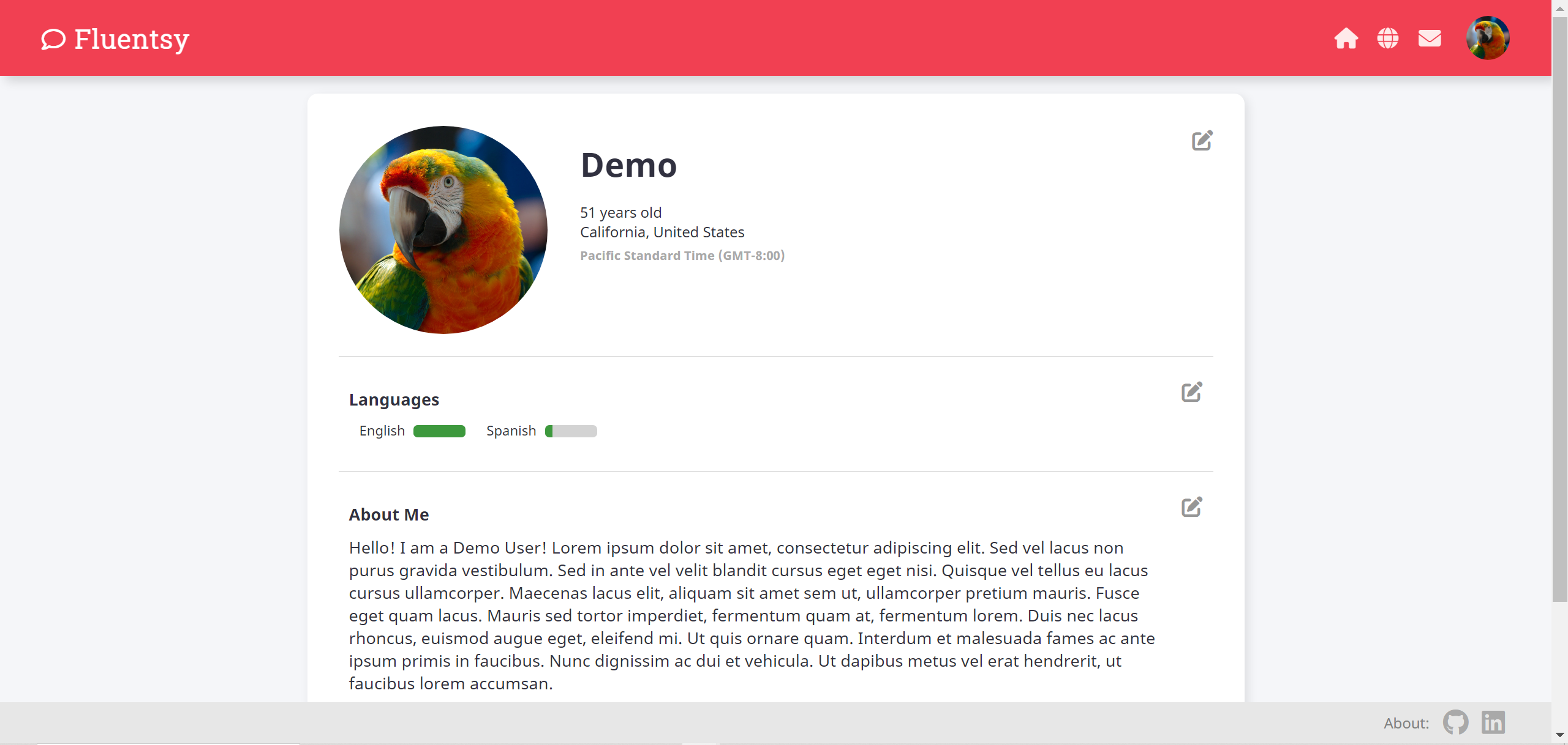 Fluentsy makes it easy to find suitable conversation partners for practice with writing and speaking skills in a target language. Using Fluentsy, someone learning Spanish may find a native speaker in search of a language exchange or a fellow student who's looking for a chance to put their knowledge to use.