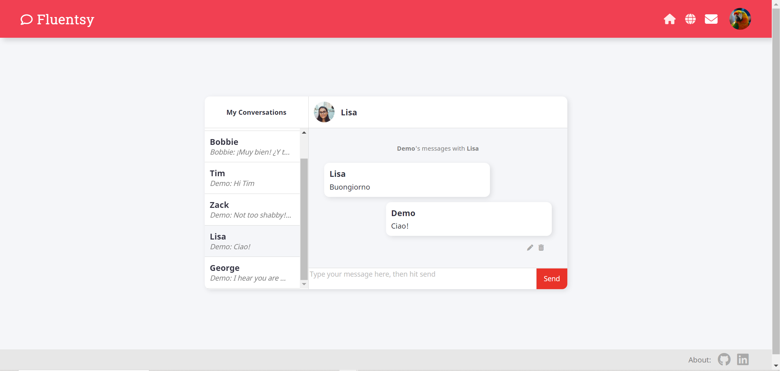 Fluentsy is a social network app for language learners, inspired in part by language exchange apps like Hello Talk and language tutoring apps like italki. Users can create attractive and informative profiles, list which languages they speak, and message other users in real time.