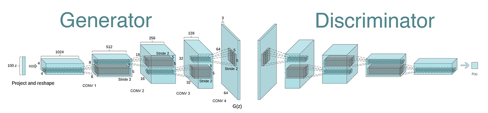 The architecture was chosen as described in the initial DCGAN research paper "Unsupervised Representation Learning with Deep Convolutional Generative Adversarial Networks”.