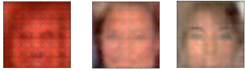 The network was first trained on the MNIST dataset. After being able to generate new handwritten digits, the CelebA dataset was used. The network then run for one full epoch and produced this result.