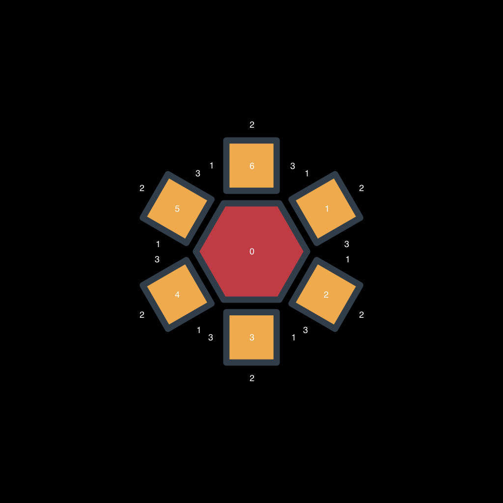 case we want to attach to all six sides of the hexagon. You can see the edges