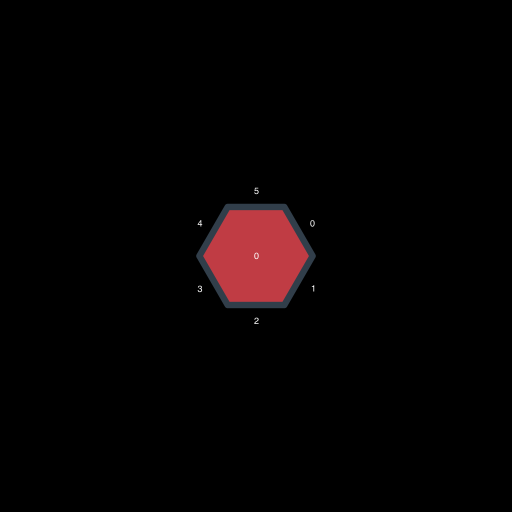 Next, we will place our first polygon at the origin. We need only specify its number of sides. Let's add a hexagon.