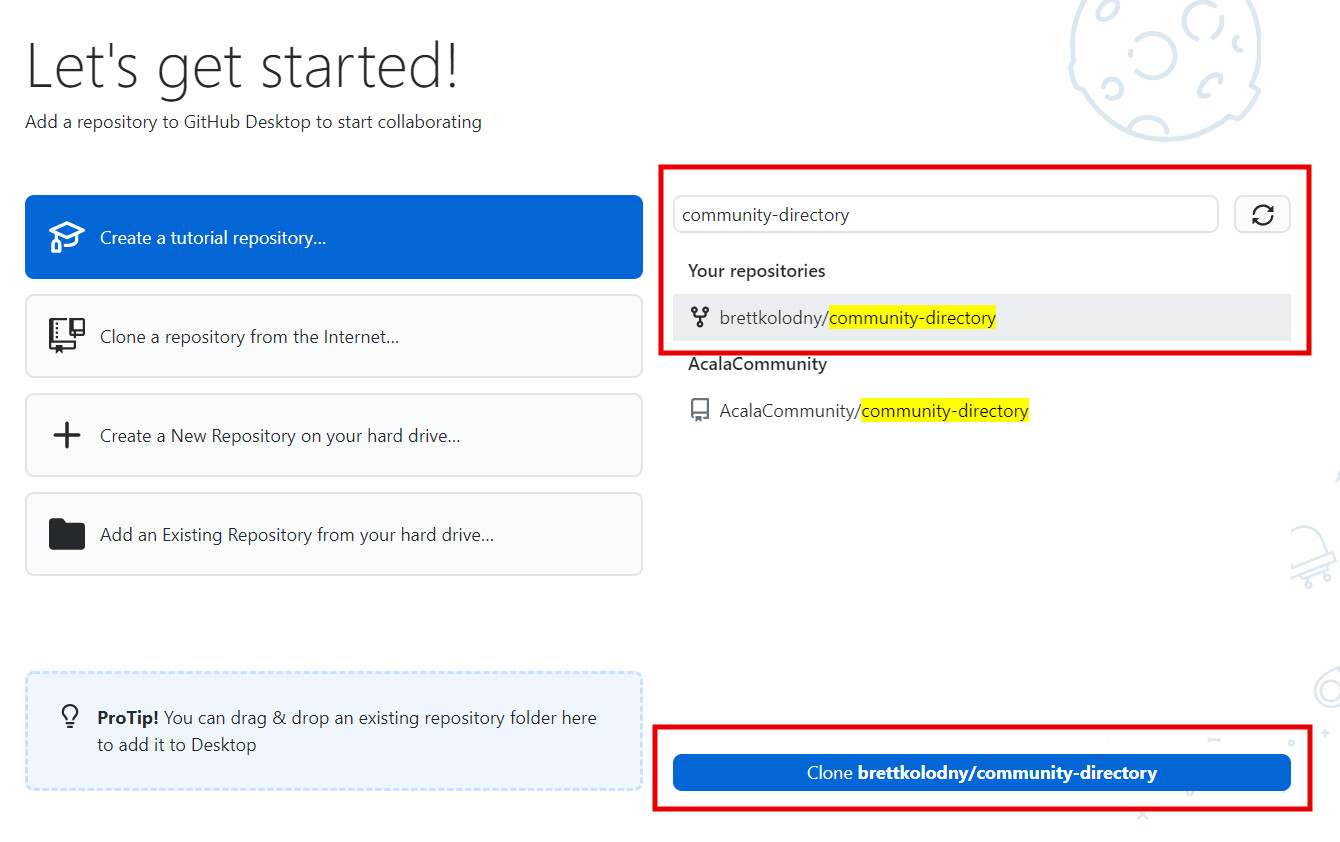 Open up GitHub Desktop and in the search bar that says Filter your repositories enter the name of this repository and then click the Clone button on the bottom to choose where you'd like to copy this repository.