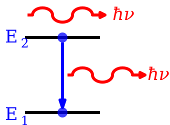 The simplest case is a 2-level system namely there're two states with different energies in the system. According to the model, three types of transition can happen.